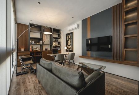 - Estudio equipado con sala de TV, librero e iluminación inteligente, con aire acondicionado