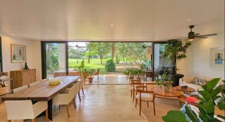 - Sala / Comedor corridos con vista panorámica al campo de golf y salida a la terraza