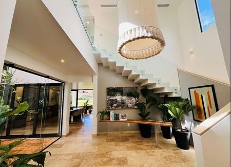 - Vestíbulo de acceso con techos a doble altura y jardín interior