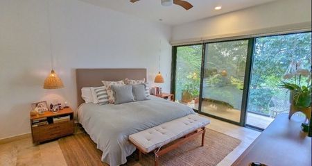 - Recámara secundaria con clóset, bañó completo y vista a un jardín interior