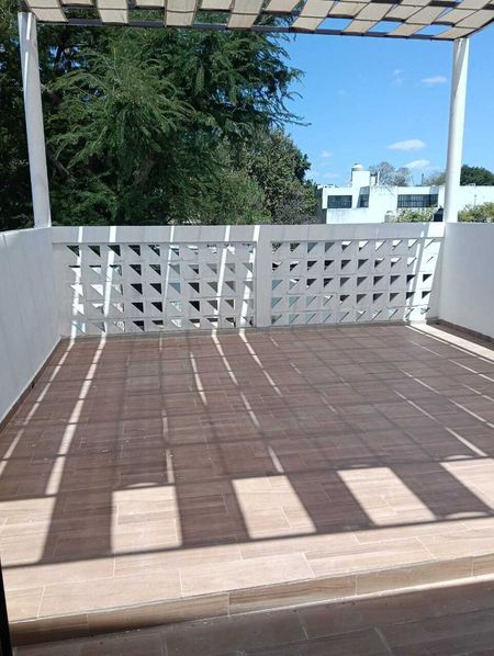 predio. En planta alta encontramos dos recamaras que comparten un baño y cada una cuenta con balcón, una de ellas con una pérgola con vista a la alberca.