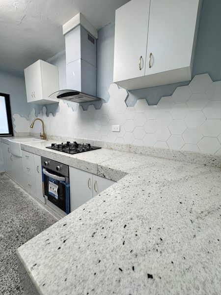 Tarja farmhouse en cocina y tarja de acero inoxidable con doble na en la terraza.
