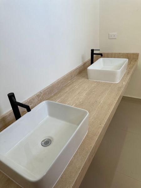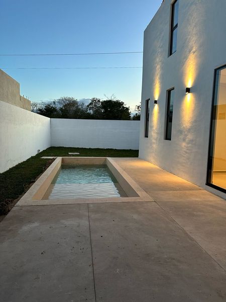 3 habitaciones, recámara principal con walk in closet, 3.5 baños, cocina vestida con gavetas y meseta con acabado granito tulum, piscina con acabado chukum, cochera techada, terraza, área de lavado. Parque infantil