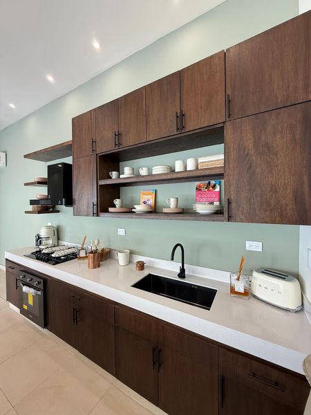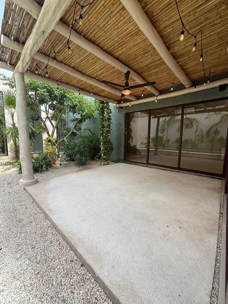 - Muros con acabados tipo chukum, piedra de la región y bambú decorativo.