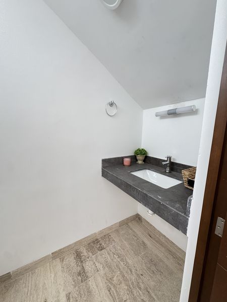 Meseta de granito en cocina, mármol en baños y pisos, orientaciones norte- sur y sur-norte.