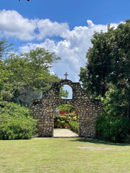 El jardín central tiene un majestuoso arco de piedra con iluminación nocturna que hace que se vea espectacular en las noches, sin duda resaltará en las reuniones o eventos importantes.